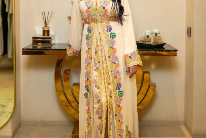 Ce caftan rouge royal incarne toute la puissance et l’élégance de l’artisanat marocain.